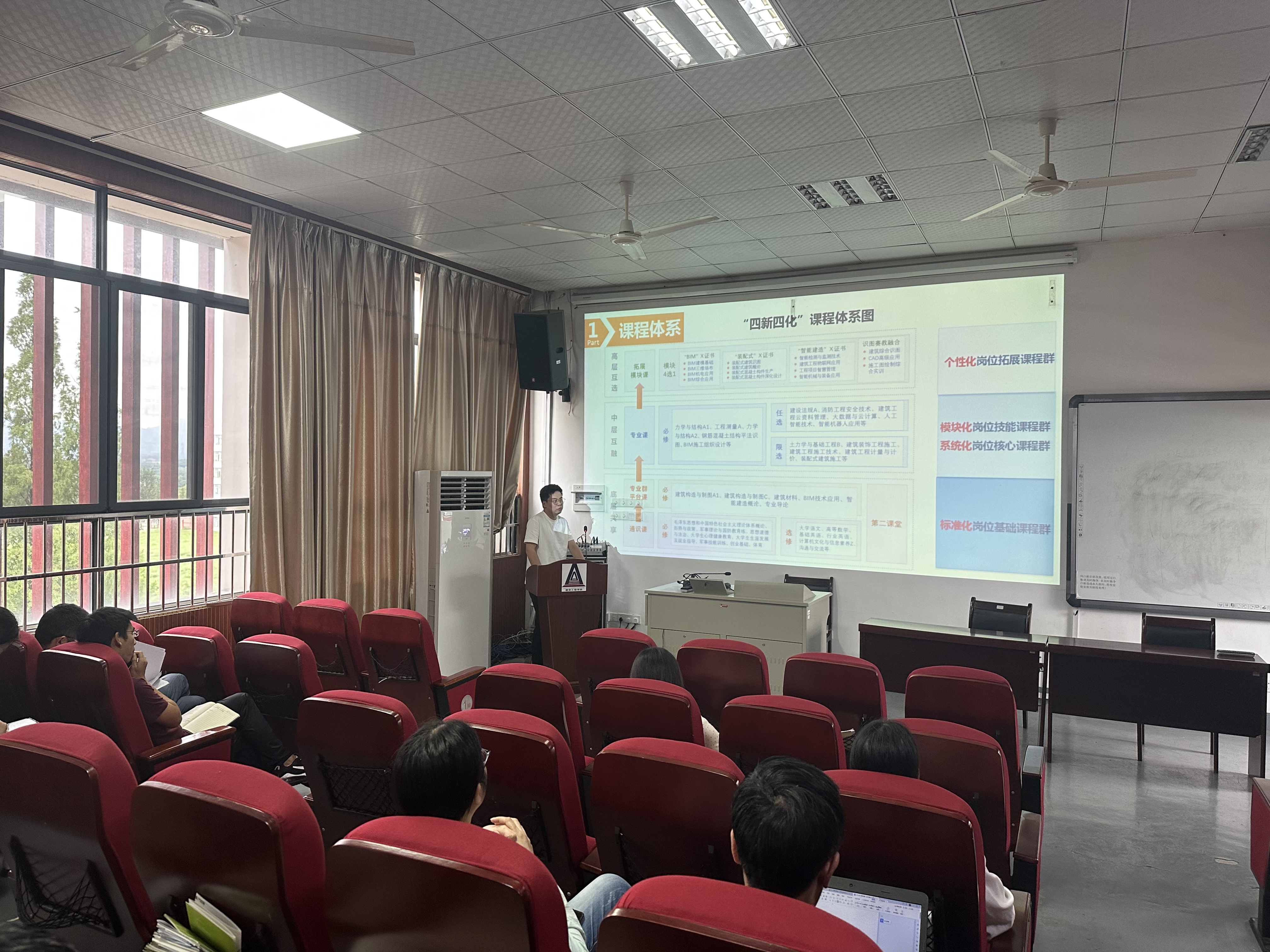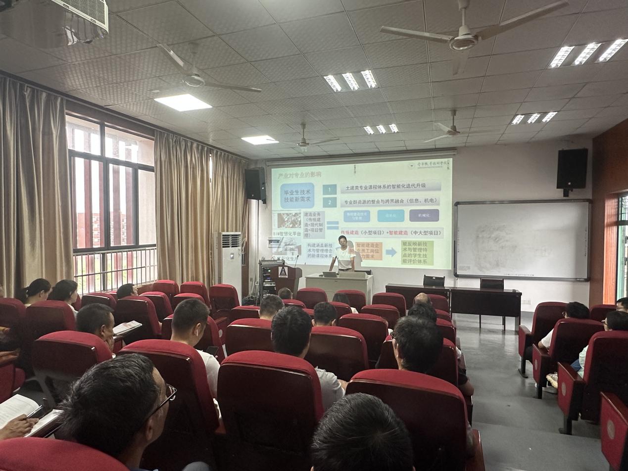 活动有两项议程,第一项是由专业(群)主任汇报未来三年专业建设规划以及职本申报计划。首先,智慧建造专业群负责人张卫民围绕建筑产业智能化转型、人才培养改革与创新、专业群工作机制创新、课程体系图研制、全景化成果打造五个方面阐述了学院专业群的发展设想,以及多方面的改革举措。随后,三位专业主任围绕各自专业建设特色,对各专业课程、师资队伍、学科竞赛、合作平台等进行分析,并展开三年发展展望。