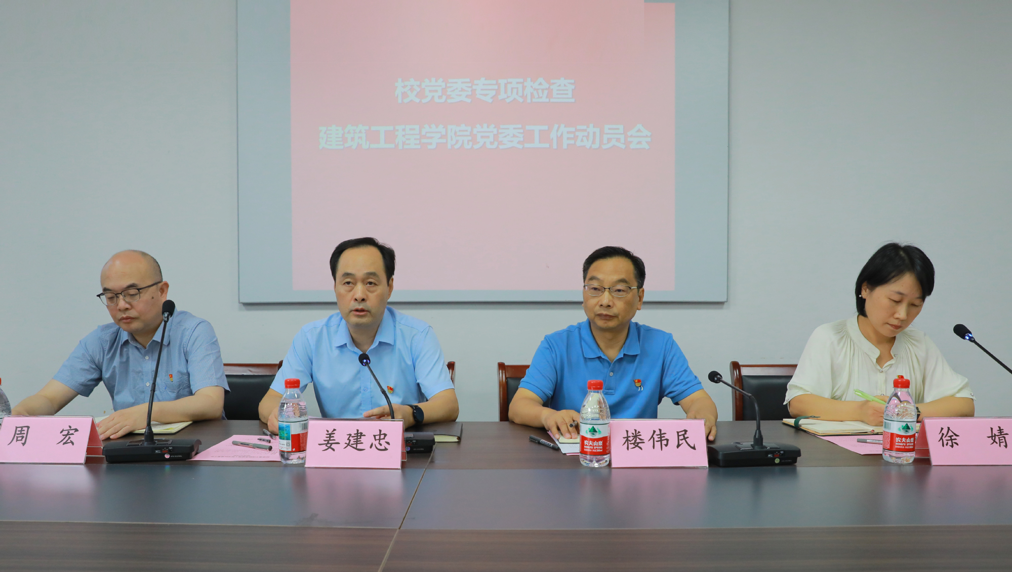 10月16日下午,校党委专项检查建筑工程学院党委工作动员会于桃李2号楼208会议室举行。校纪委书记、党委巡察工作领导小组副组长姜建忠,校党委副书记、专项检查组组长楼伟民出席会议并讲话。巡察办、学工部、教务处、科技处负责人,校党委专项检查组全体人员,建筑工程学院中层及以上干部、近5年调离及退休的原领导班子成员、师生代表参加了会议。动员会由建筑工程学院党委书记徐婧主持。