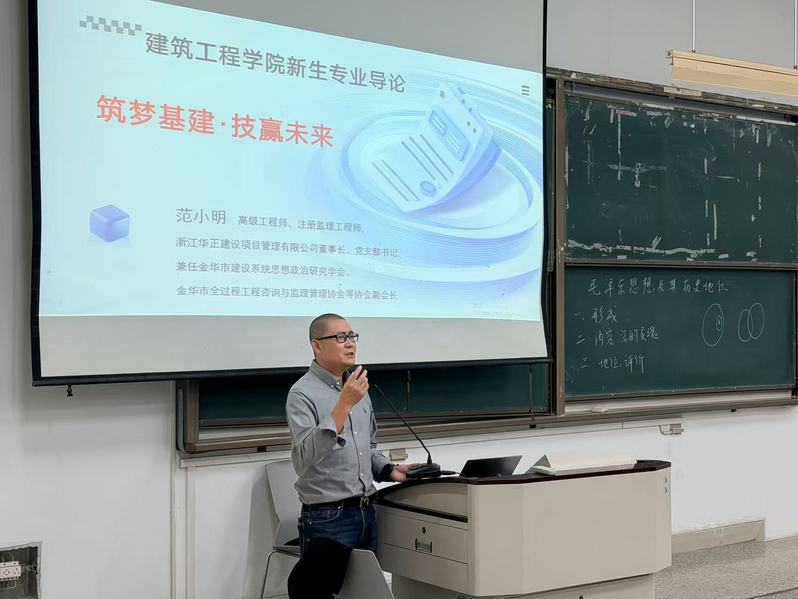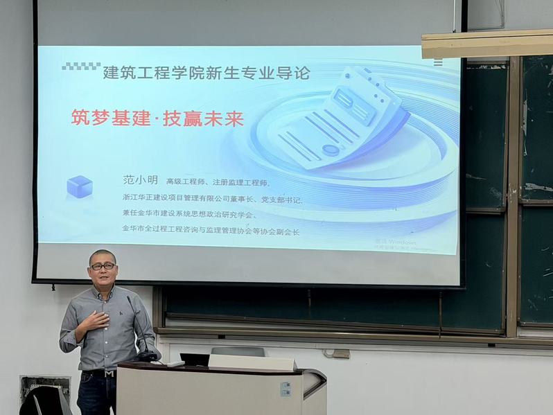 11月5日,浙江华正建设项目管理有限公司董事长、党支部书记范小明为25建筑工程技术专业新生带来了一场主题为“筑梦基建・技赢未来”的始业教育讲座,帮助新生精准把握专业方向、明晰行业前景。