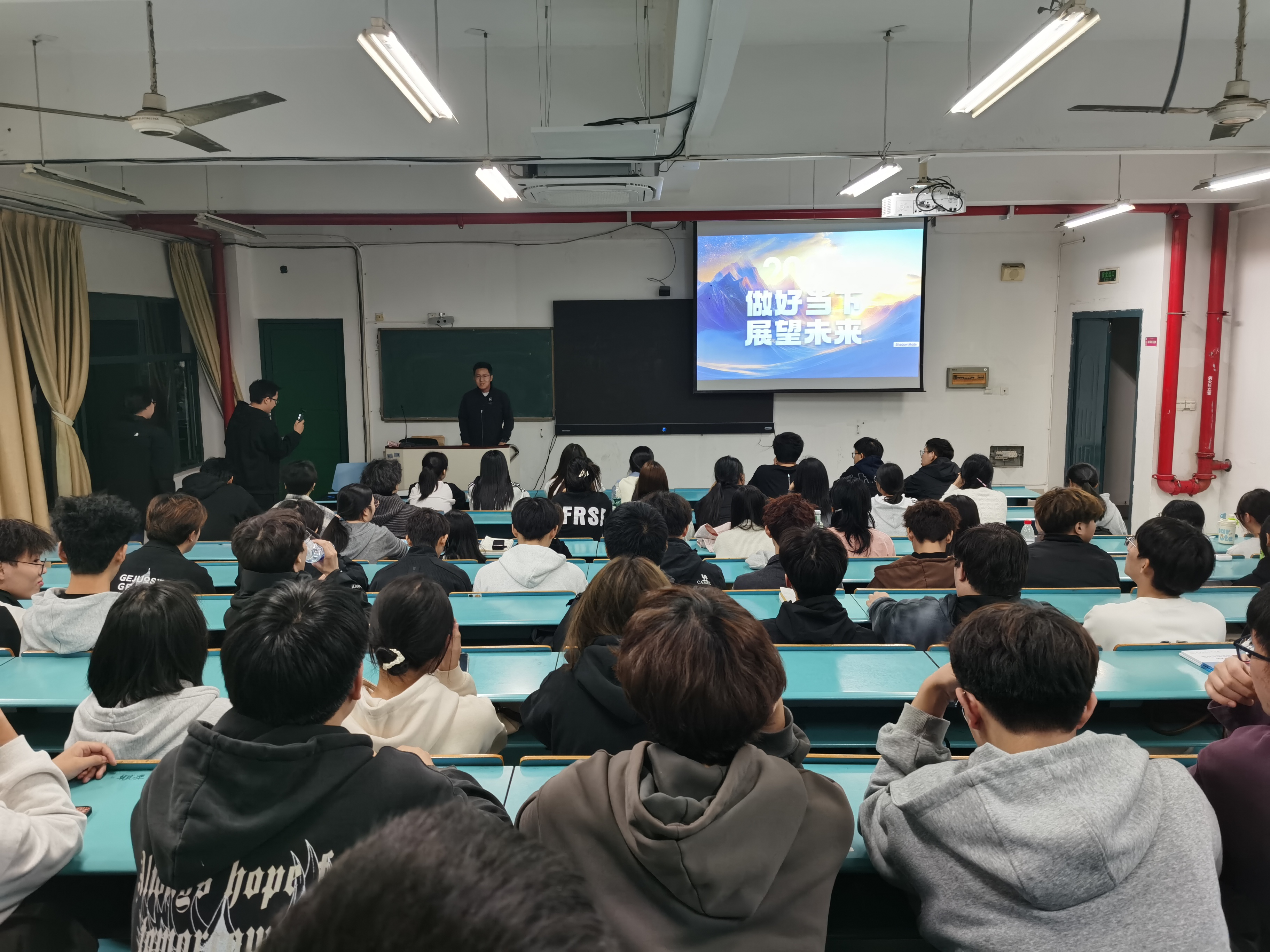 为助力新生明确职业方向,深化对建筑装饰行业的认知,2025年11月17日晚,金华市明家装饰工程有限公司总经理卢明军应邀为建筑装饰工程技术专业新生开展题为“做好当下·技赢未来”的专题讲座。讲座围绕职业成长路径、行业发展趋势及职业规划建议展开,为在场学子带来了一场兼具专业性与实践指导意义的职业启蒙课。