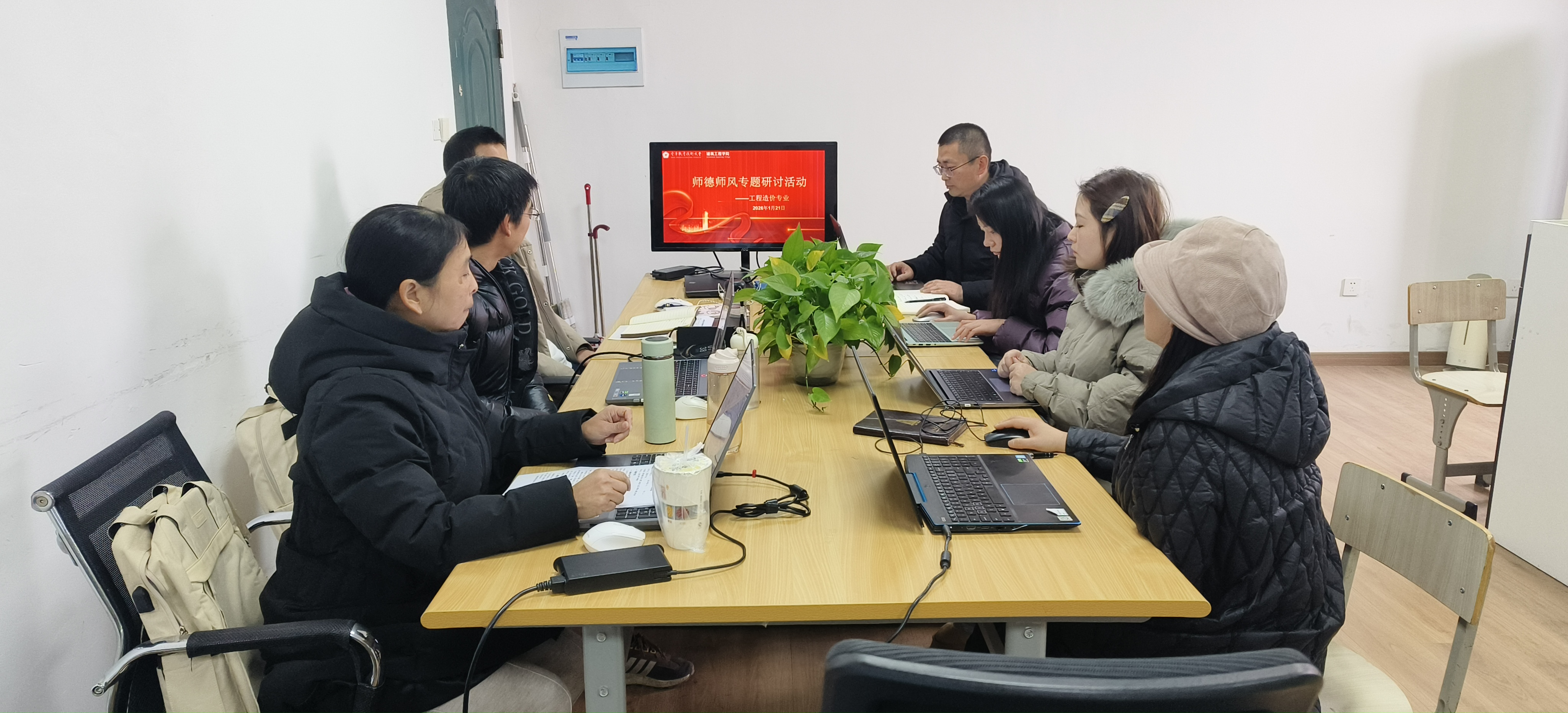 2026年1月21日,工程造价专业召开师德师风专题研讨活动。本次会议围绕师德师风文件学习和自查自纠两个环节展开。一、师德师风文件学习会议集体学习2026年全国教育工作会议精神,重点学习了中共中央国务院“关于弘扬教育家精神加强新时代高素质专业化教师队伍建设的意见”和“关于弘扬教育家精神加强新时代高素质专业化教师队伍建设的意见”等文件,领悟为党育人、加强师德师风培养等精神要点。二、师德师风自查自纠会议要求全体教师对照《师德师风重点事项问题清单》开展自查自纠。全体教师现场分享学习感想和自查情况,深入反思自身不足,明确改进措施和提升方向。