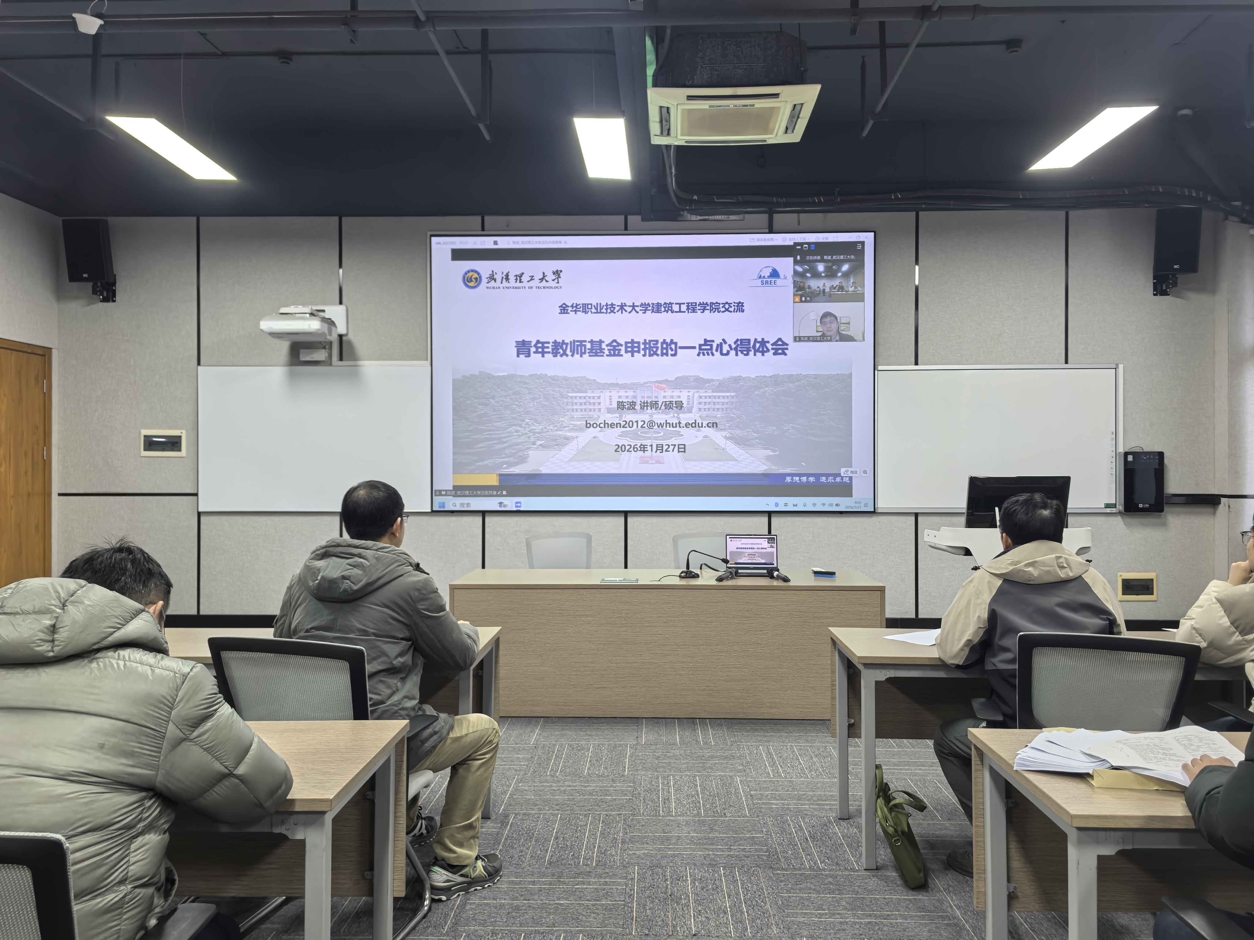 为深入贯彻落实学院科研高质量发展战略,锚定学科建设与科研创新核心目标,精准赋能教师科研能力提升,1月27日上午,金华职业技术大学建筑工程学院特邀陈波博士开展国自然基金申报辅导及学术前沿讲座。学院朱锋盼副院长出席,全体博士、教授及科研骨干参会,共同汲取学术养分,凝聚科研共识。第一阶段,陈波教授以《青年教师基金申报的一点心得体会》为题,开展国自然基金申报专项辅导。他结合自身丰富的申报经验与评审经历,从基金申报的选题方向、申报要点、撰写技巧等核心维度展开深入讲解,重点剖析了申报书中研究内容、技术路线、创新点等关键模块的撰写逻辑与优化方法,用详实案例拆解常见问题与规避策略,为青年教师梳理出清晰的申报思